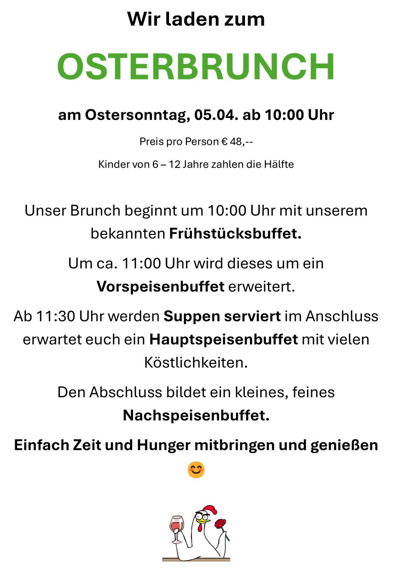 Wir bitten um Vorreservierung bis Freitag Mittag, da wir nur frische, steirische Hendln servieren!