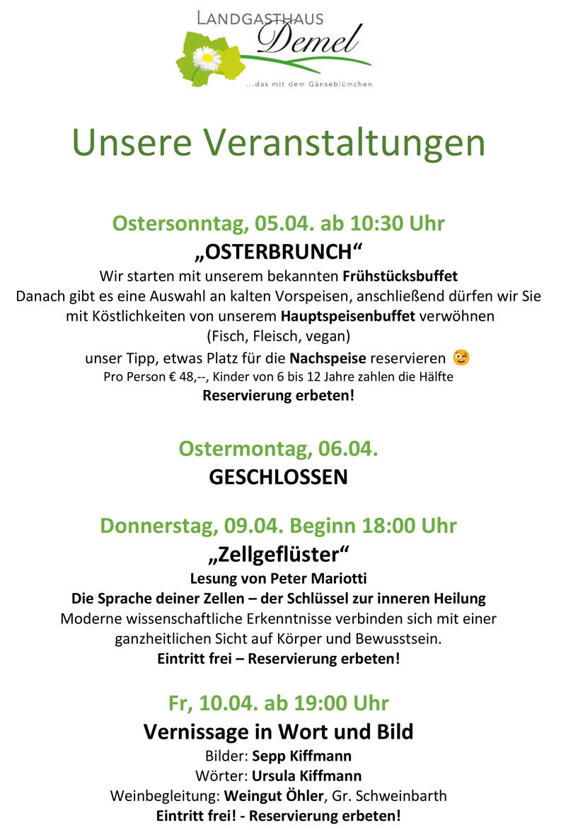 Liebe Gäste, herzlich Willkommen im Landgasthaus DEMEL!